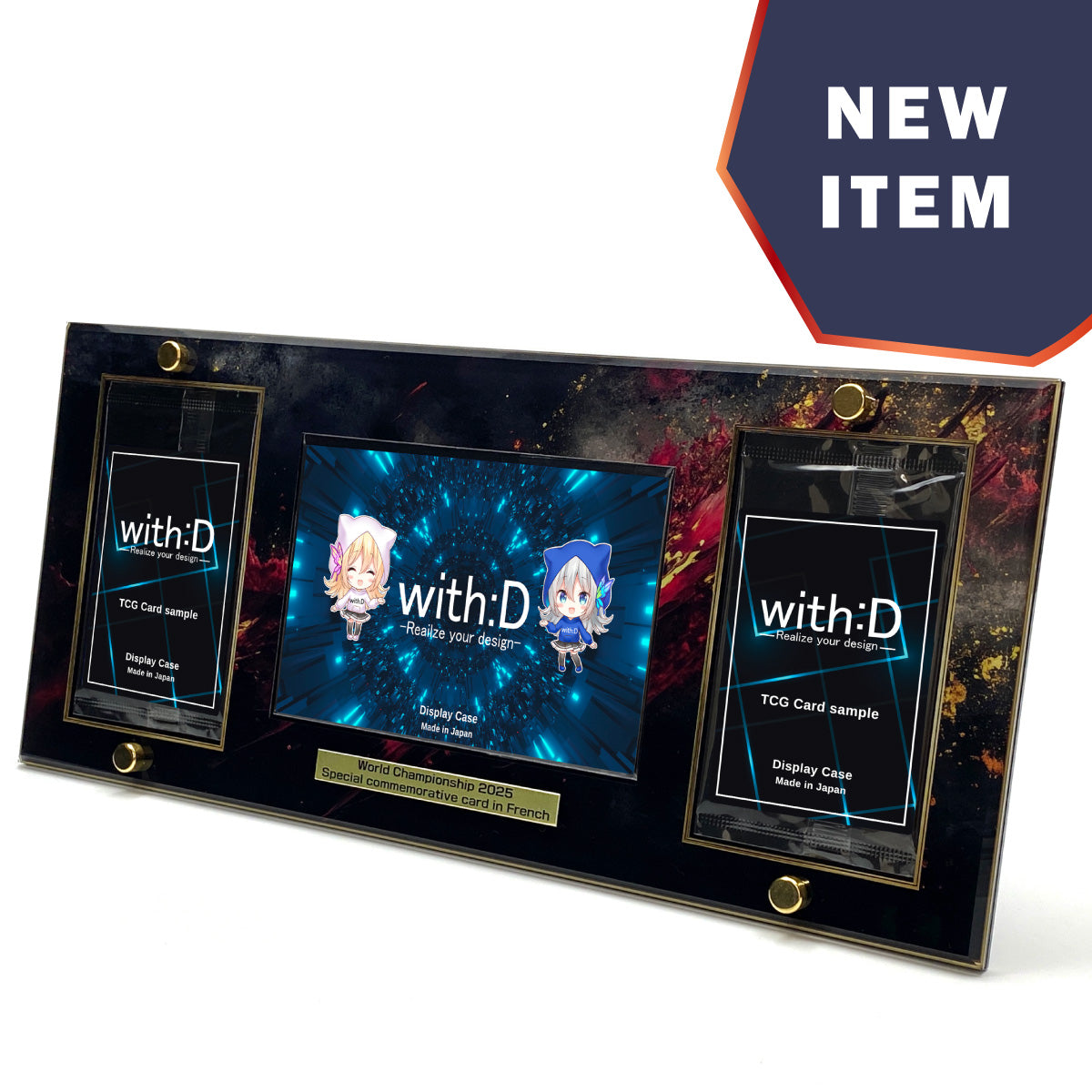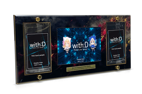 遊戯王WCS2025の記念カード「魔導戦士 ブレイカー」「聖なるバリア -ミラーフォース-」を封筒と一緒に飾れるカードディスプレイ‼